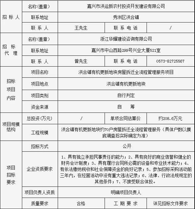 管理服务项目招标信息发布表