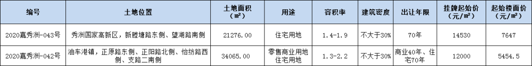 昨日,市本级挂牌2宗住宅用地,地块编号为2020嘉秀洲-042号和2020嘉秀洲-043号,一宗来自秀湖,一宗来自油车港天鹅湖,两宗地块将于12月18日出让。