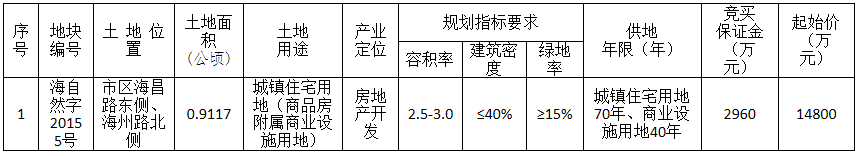 地块位置:市区海昌路东侧、海州路北侧