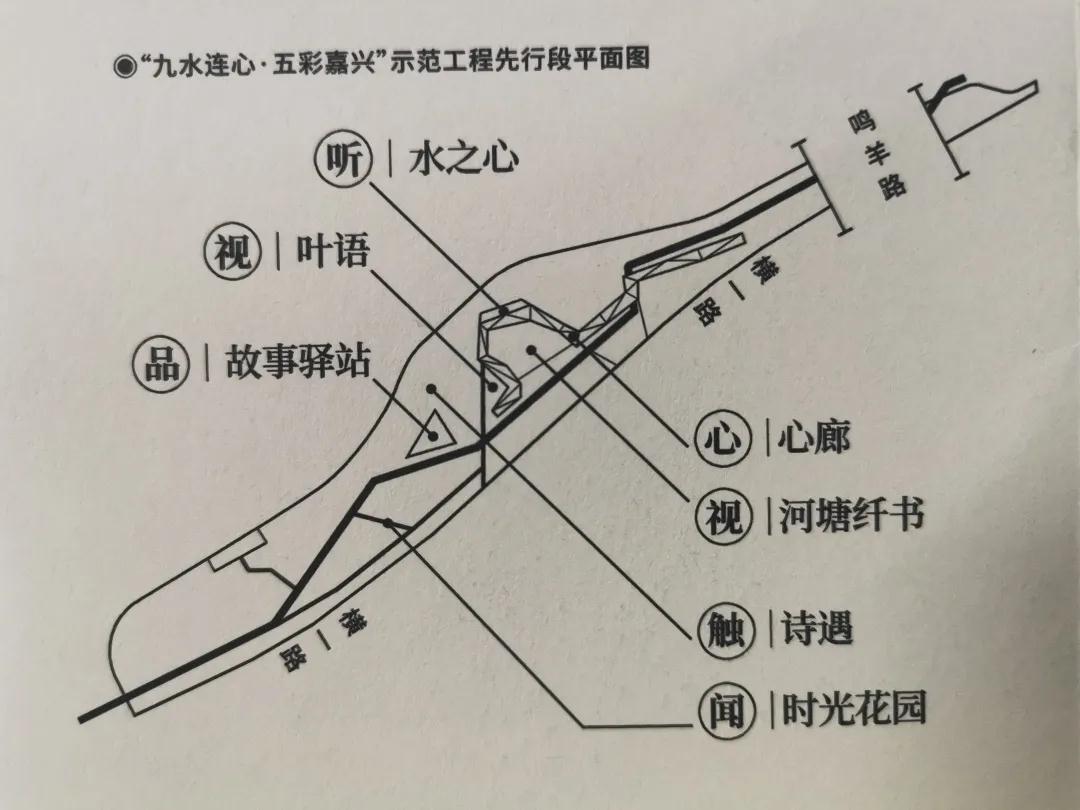 据悉,长纤塘示范样板段整体以“江南六感”为设计理念,在行走间感知“视、听、闻、品、触、心”六种感官体验,通过文化、绿道、建筑、海绵、亮化、智慧、公共艺术、无障碍设计集成八大示范标杆。