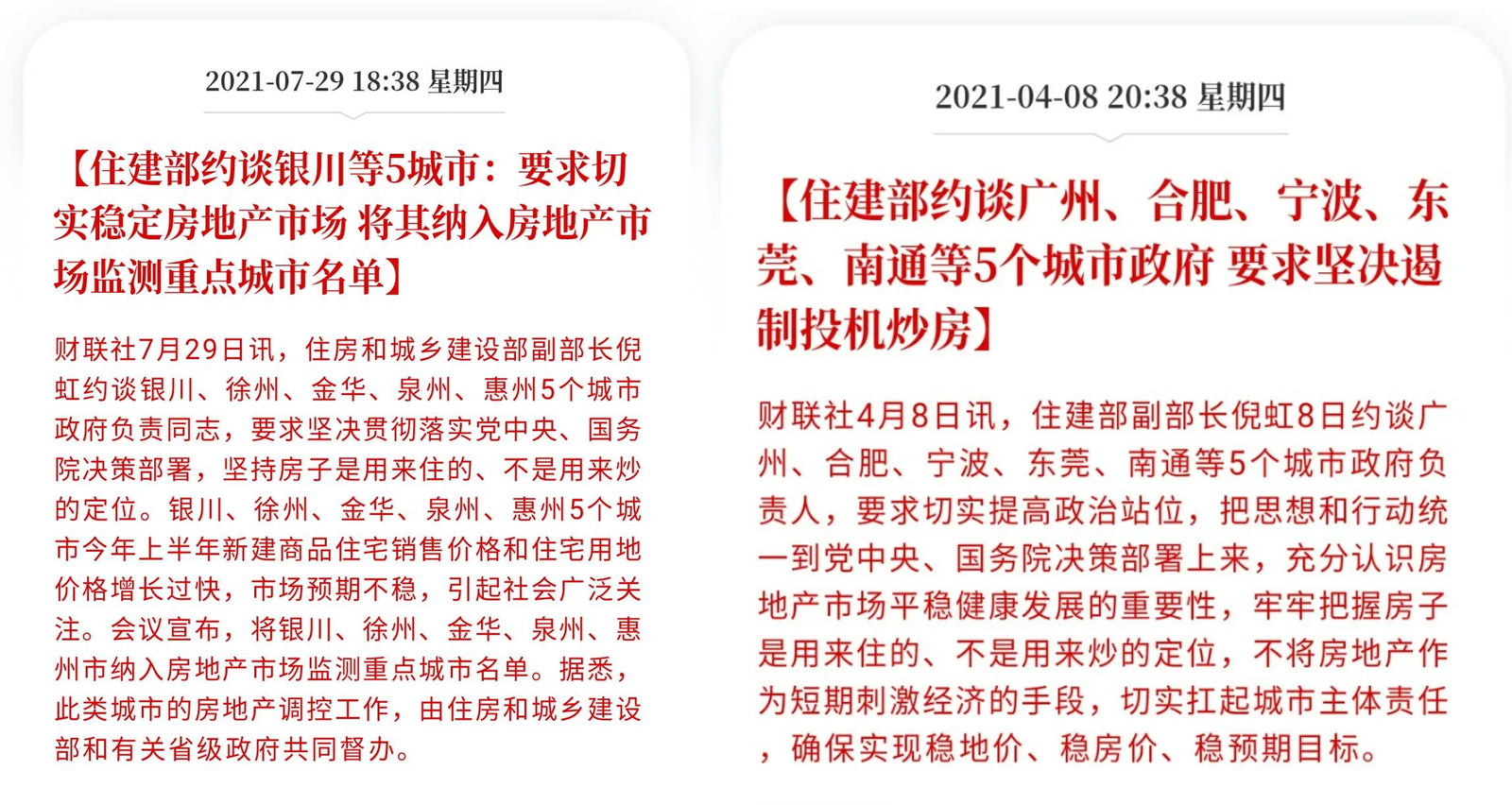 在今年4月,住建部约谈了广州、合肥、宁波、东莞、南通等5城,要求坚决遏制投资炒房,紧接而来的就是调控升级。