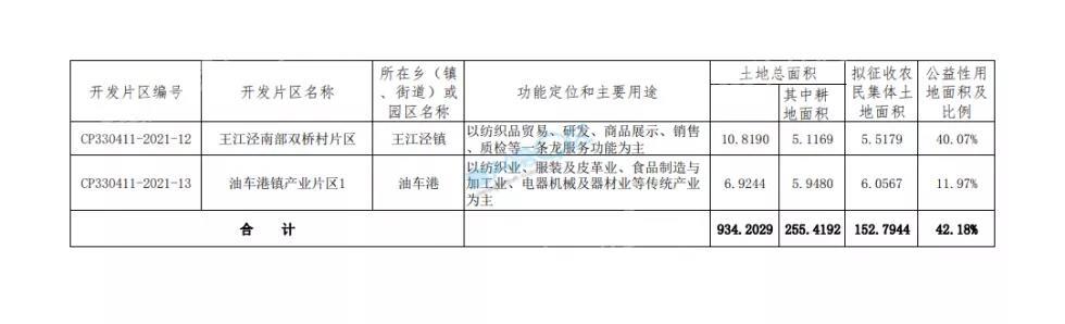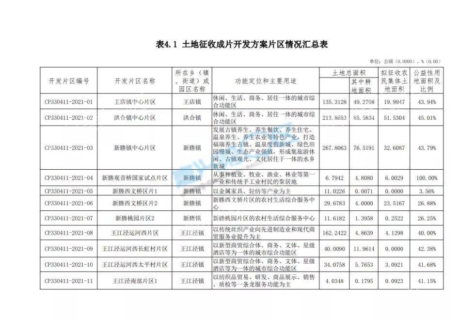 其中,王江泾有5个片区在列