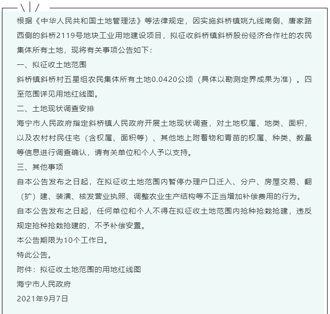 主要涉及海昌街道、斜桥、丁桥等地